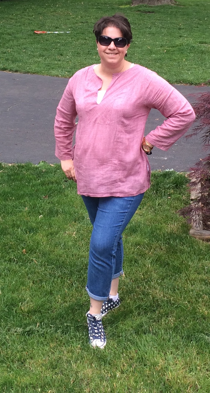Wednesday, May 4, style prompt- build an outfit around a favorite necklace. I'll admit I didn't actually build the outfit around the necklace but the necklace is a favorite. Tee shirt is Ottobre, pants are modified